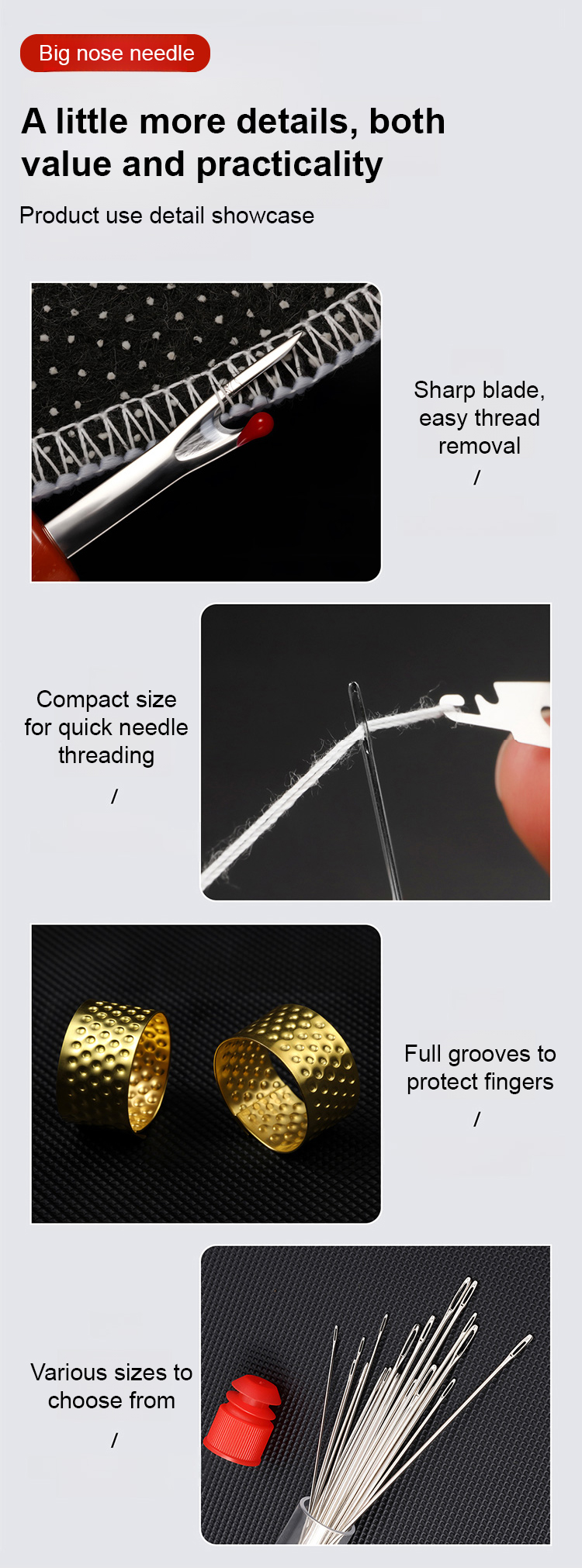 [Great Value 34-Piece Set] Large-Eye Steel Needle Sewing Tool Set