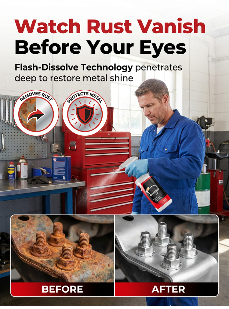 🚀Removes rust in 3 seconds—no sanding, blasting, or disassembly needed. Powerful Rust Remover Spray: 3-in-1 Cleaning, Rust Removal, and Protection
